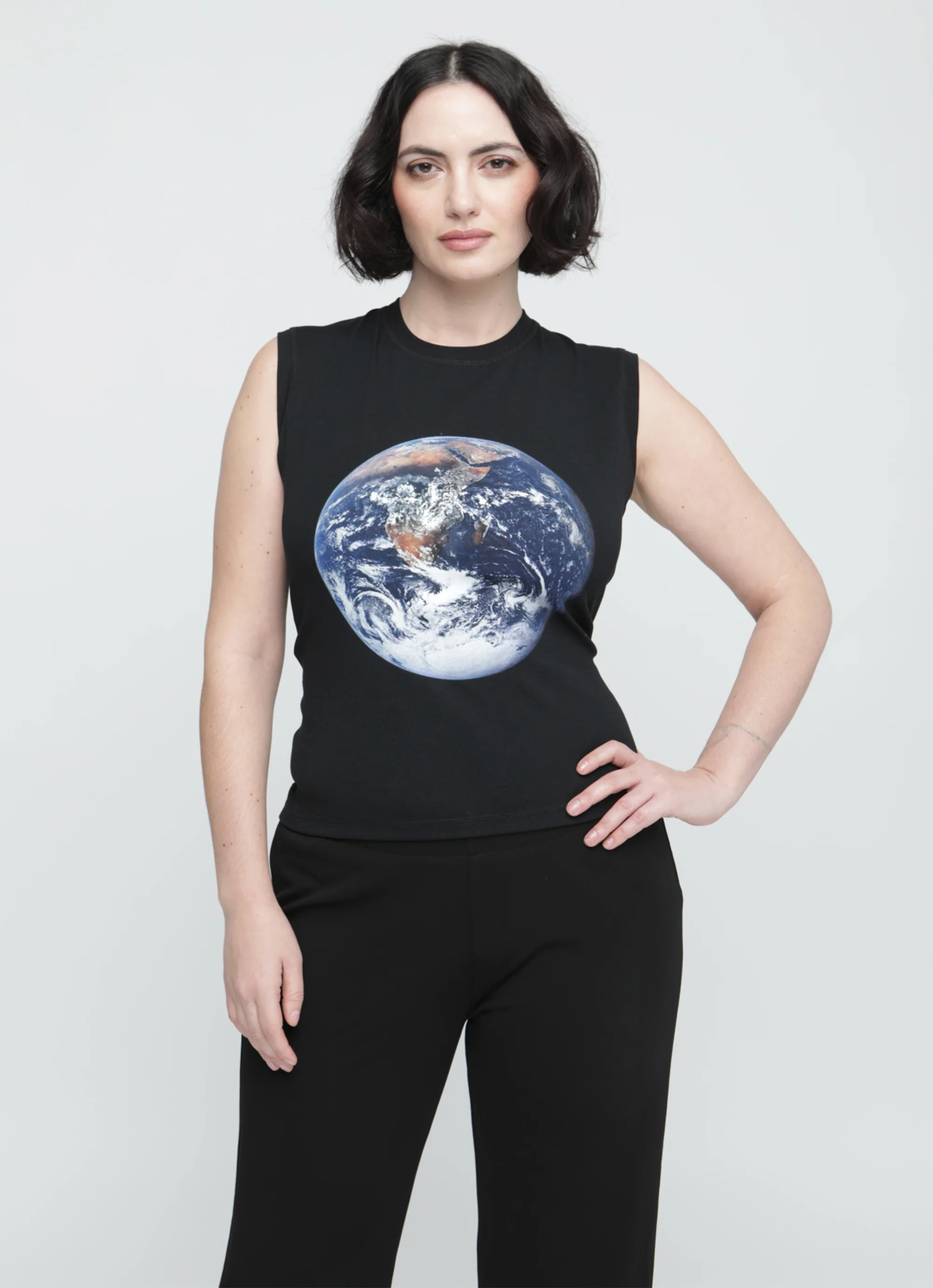 Our favorite planet as a screenprint on our most loved silhouette. A crew-neck tank top cut to fit you perfectly in a midweight pure cotton jersey.