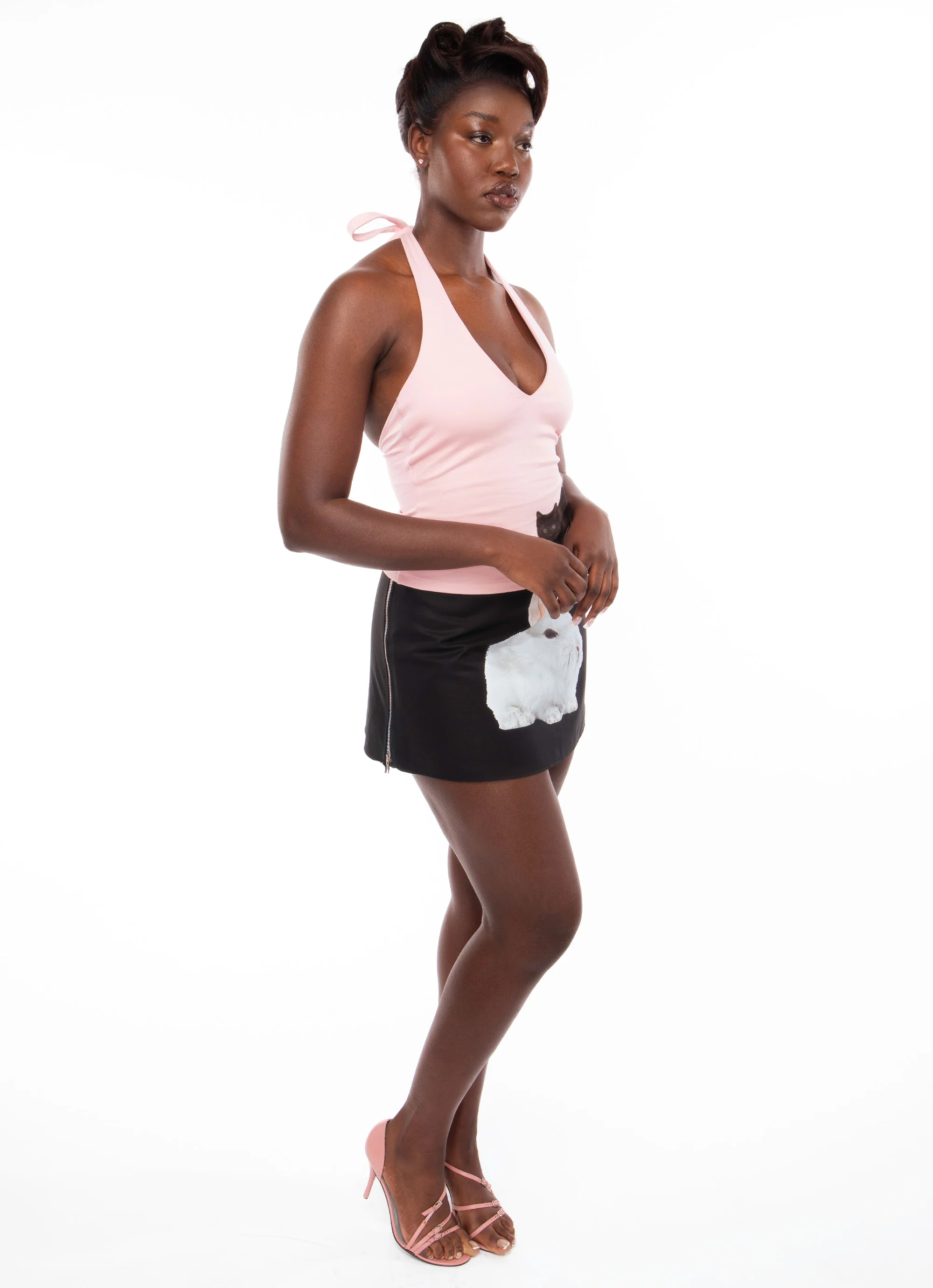 A low-rise mini skirt in cotton twill with the fluffiest screen print front and center. Featuring double ended exposed metal zips on both sides. This style runs slightly large, size down if between sizes.
