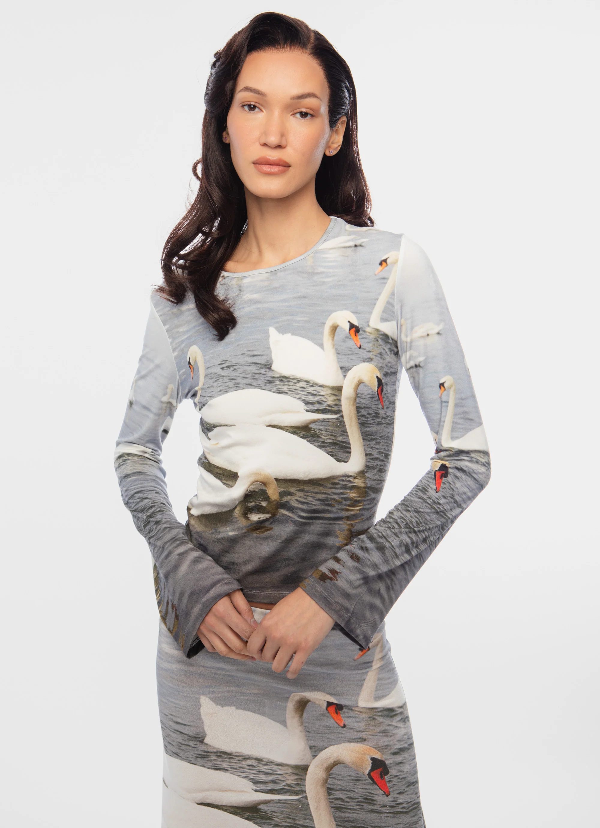 One of our Core prints, be soothed and romanced by this full-bleed digital print of swans lounging in a pond. The Heidi is one of our bestselling silhouettes and for good reason - its the perfect crew neck long sleeve cut in soft and stretchy modal jersey that hugs you just right. Pair with the matching skirt for the full look.